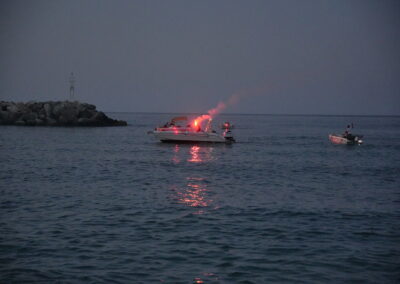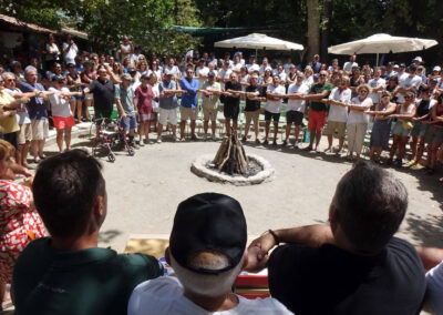 Μετά τον πρωινό εκκλησιασμό στο παλιό εκκλησάκι στον Αη Γιάννη, η τελευταία εκδήλωση των εορτασμών πραγματοποιήθηκε γύρω από την πυρά.