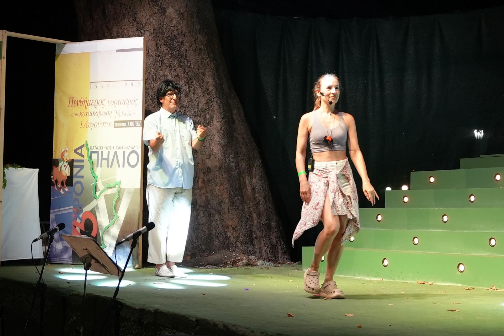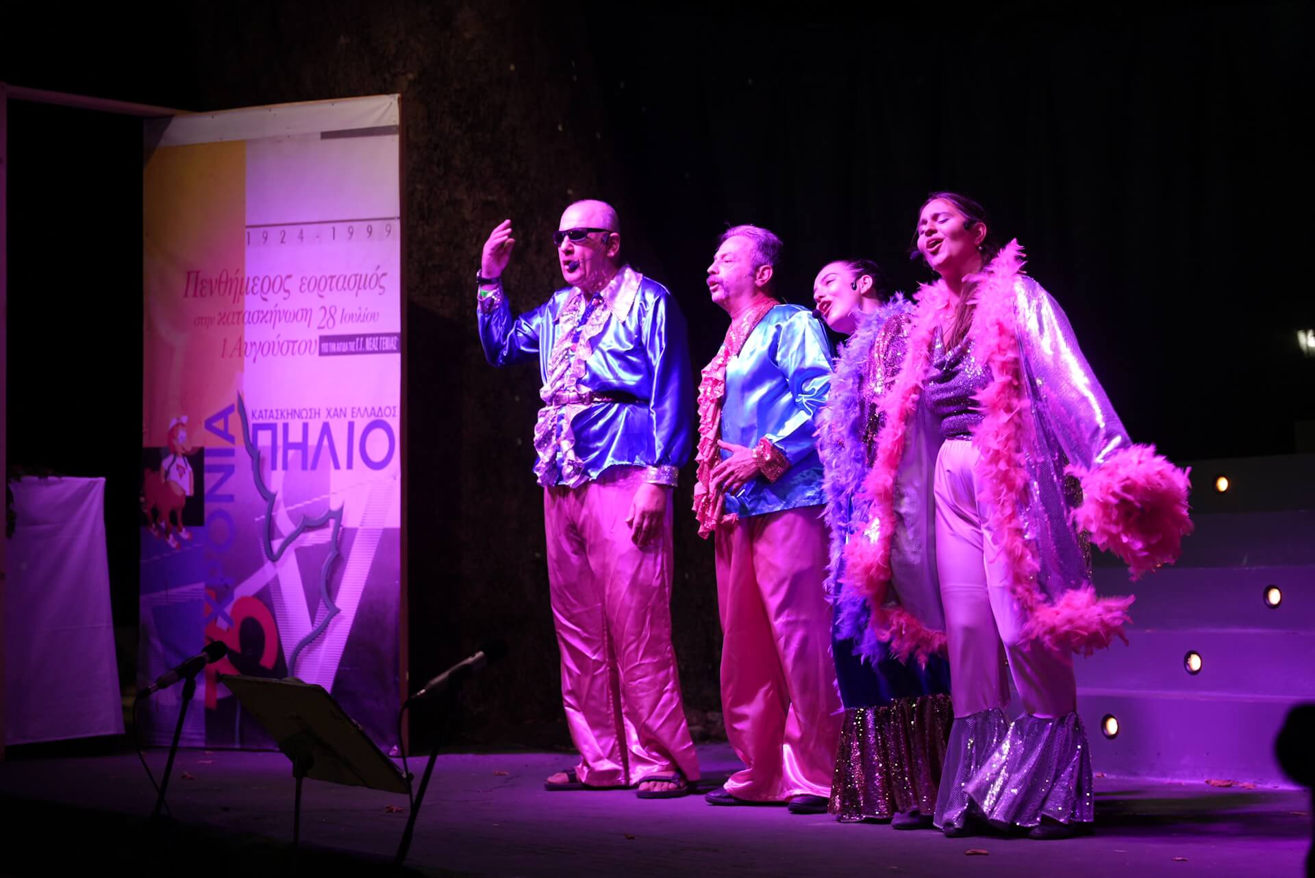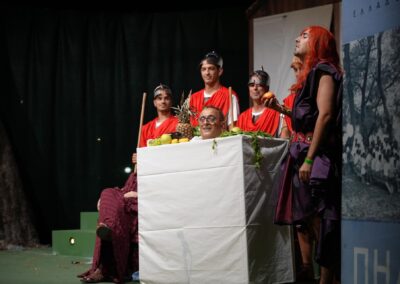 Με τα επίκαιρα κείμενα, τις χιουμοριστικές ατάκες, τα εντυπωσιακά κουστούμια και το σατιρικό περιεχόμενο, η φετινή παράσταση με τίτλο “ΟΔΟΣ ΚΕΝΤΑΥΡΩΝ” αποτέλεσε ένα από τα σημεία του εορτασμού που μικροί και μεγάλοι ανυπομονούσαν να παρακολουθήσουν.