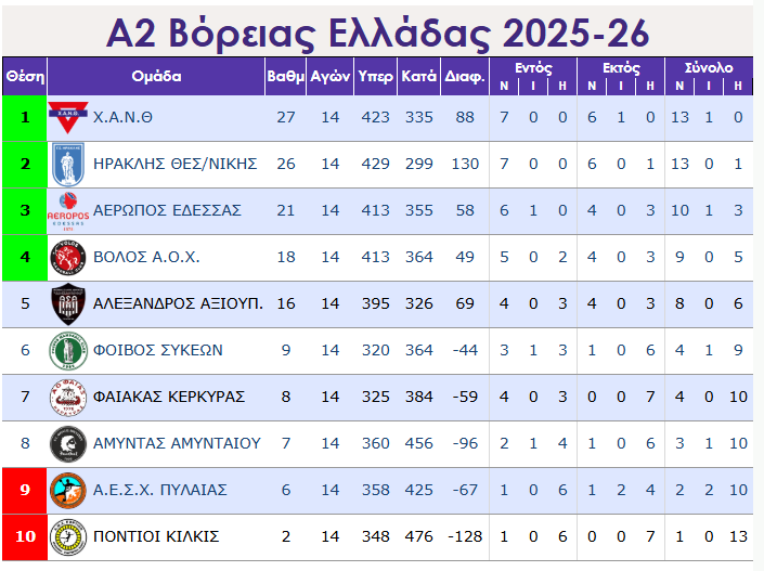 Στην 1η θέση του βαθμολογικού πίνακα της Α2 Ανδρών παρέμεινε η Χ.Α.Ν.Θ. μετά τη νίκη της λίγες ημέρες πριν επί του Φαίακα Κέρκυρας με 29-18. Σε σύνολο 14 αγώνων μέχρι στιγμής η ΧΑΝΘ μετράει 13 νίκες και 1 ισοπαλία έχοντας αποδώσει όμορφο χάντμπολ δείχνοντας παράλληλα πως υπάρχουν πολλά περιθώρια βελτίωσης.