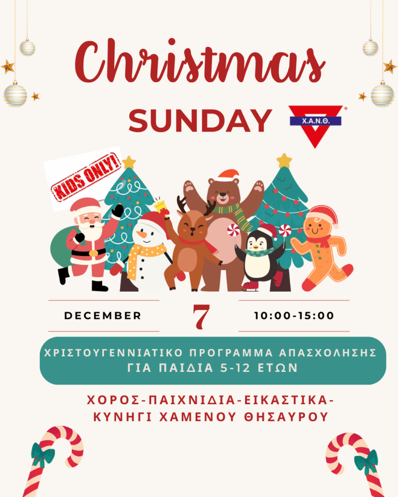 Την Κυριακή 7 Δεκεμβρίου 2025 προσκαλούμε στη Χ.Α.Ν.Θ. όλα τα παιδιά που θέλουν να περάσουν ένα όμορφο, δημιουργικό & γιορτινό πρωινό στο πνεύμα των Χριστουγέννων! ✨🎅💫
