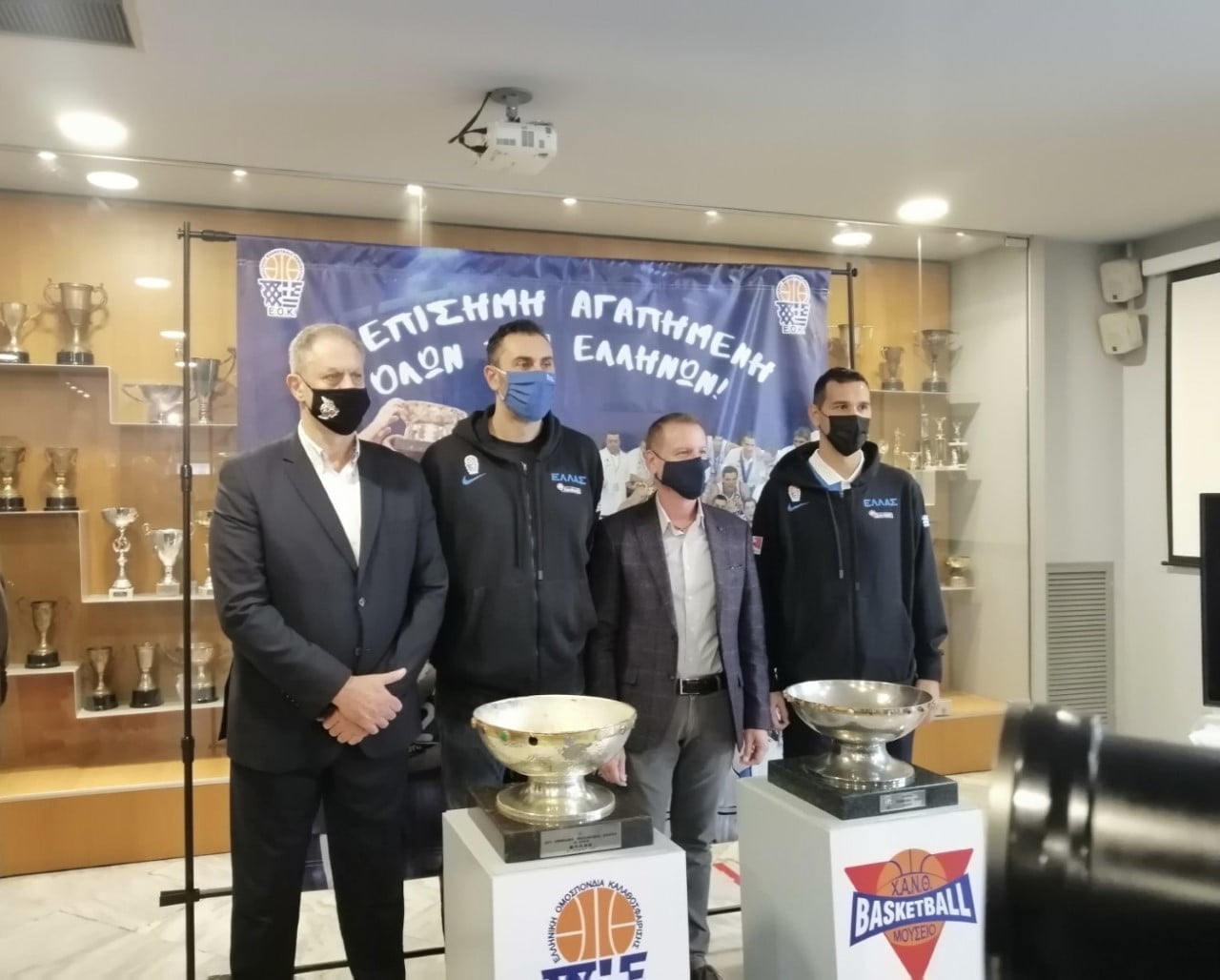 Ένα μοναδικό, εκπληκτικό σκηνικό στήθηκε στο μουσείο μπάσκετ της Χ.Α.Ν.Θ., όπως αρμόζει στα δυο ανεκτίμητα τρόπαια που φιλοξενεί στις προθήκες της.
