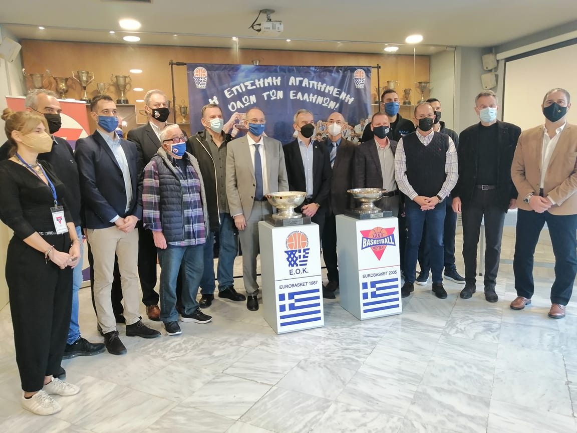 Στην εκδήλωση που έλαβε χώρα μπροστά από τις προθήκες των δυο τροπαίων, ο πρόεδρος της επιτροπής του Μουσείου μας Διονύσης Ανανιάδης, το μέλος της επιτροπής, Μιχάλης Γιαννουζάκος κι ο πρεσβευτής του Μουσείου της Χ.Α.Ν.Θ. Λάκης Τσάβας(όλοι τους διεθνείς καλαθοσφαιριστές της Αδελφότητας), καλωσόρισαν τον πρόεδρο της ΕΟΚ, τον Δήμαρχο Θεσσαλονίκης , τον Νίκο Σταυρόπουλο(μέλος της ομάδας του 1987) τους Νίκο Ζήση και Δήμο Ντικούδη (μέλη της χρυσής ομάδας του 2005 και νυν στελέχη της Εθνικής) και τον Νίκο Ζεϊμπέκη (μέλος του δ.σ. της ΕΟΚ).