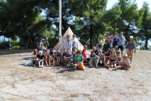 Η επιστημονική υπεύθυνη του προγράμματος «Μαζί ως οικογένεια» του Τομέα Δράσης και Κοινωνικής Προσφοράς της Χ.Α.Ν.Θ., Φωτεινή Μουρατίδου και δύο εθελόντριες, η Σοφία Μεταξίδου και η Galina Ostapchuk πήγαν στην κατασκήνωση της Αδελφότητας, στον Άγιο Νικόλαο Χαλκιδικής, για μια ξεχωριστή κοινωνική δράση. Η δράση «ο κόσμος των θαυμάτων» δημιουργήθηκε για σαράντα δύο παιδιά από την εμπόλεμη Ουκρανία, από γονείς της ελληνικής διασποράς, της Οδησσού. Σκοπός, εκτός της διασκέδασης, ήταν να δοθεί στα παιδιά η δυνατότητα έκφρασης για το πως φαντάζονται τον «κόσμο των θαυμάτων», τον ιδανικό τους κόσμο! Η δράση την πρώτη μέρα εκτυλίχθηκε στην τραπεζαρία της κατασκήνωσης με τη συμμετοχή όλων των παιδιών. Η συντονίστρια Φωτεινή Μουρατίδου ενθάρρυνε τα παιδιά να εκφραστούν όπως αυτά ήθελαν πάνω σε ένα κομμάτι ύφασμα και μετά να δημιουργήσουν ένα κολάζ πάνω σε μια κατασκηνωτική σκηνή, αφήνοντας με αυτόν τον τρόπο τη δική τους «πινελιά» και το δικό τους μήνυμα στην κατασκήνωση και κατ’ επέκταση στην Ελλάδα.