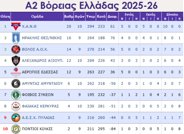 Για την 10η αγωνιστική του πρωταθλήματος της Pre League στο βόλεϊ η ΧΑΝΘ επικράτησε εκτός έδρας του Πήγασου Πολίχνης με 2-3 σετ (27-29, 25-19, 25-17, 23-25, 09-15).