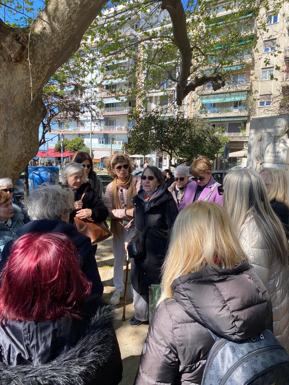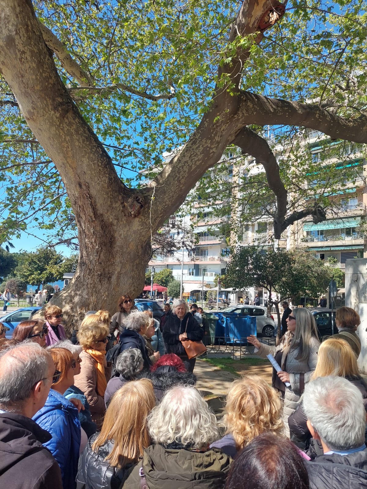 Αυτή τη φορά γνωρίσαμε τα πλατάνια στις πλατείες Ναβαρίνου και Τσιρογιάννη και συγχρόνως είχαμε την ευκαιρία να πληροφορηθούμε την εξέλιξη και τη διαμόρφωση της περιοχής με την παράλληλη ανασκαφή και ανάδειξη του αρχαιολογικού χώρου του Γαλεριανού συγκροτήματος. Επίσης, γνωρίσαμε αξιόλογα στοιχεία για το τοπόσημο της πόλης μας τον Λευκό Πύργο, τα παραθαλάσσια τείχη της Θεσσαλονίκης και την κατεδάφισή τους, αλλά και τη σημερινή διαμόρφωση σε αυτό το τμήμα της παραλίας. Για όλα αυτά μας μίλησαν οι κ.κ. Θέκλα Τσιτσώνη, δασολόγος, ομότιμη καθηγήτρια ΑΠΘ, η Στυλιανή Λεφάκη, αρχιτέκτων, καθηγήτρια στο Τμήμα Αρχιτεκτόνων ΑΠΘ και η Ιωάννα Στεριώτου, Δρ αρχιτέκτων.