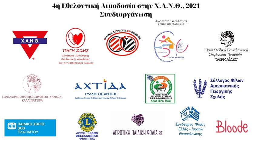 Οι 14 κοινωνικοί φορείς, συνδιοργανωτές της 4ης εξόρμησης αιμοδοσίας ήταν: Χ.Α.Ν.Θ., Πηγή Ζωής, Ελληνικός Σύλλογος Θαλασσαιμίας, Φιλόπτωχος Αδελφότης Κυριών, ΠΑΣΓ Καλλιπάτειρα (Παράρτημα Θεσσαλονίκης), Θερμαΐδες, Σύλλογος Φίλων Αμερικανικής Γεωργικής Σχολής, Αγροτική Παιδική Φωλιά ΒΕ, Αχτίδα, Παιδικό Χωριό SOS Πλαγιαρίου, Bloode, Λέσχη LIONS Θεσσαλονίκης ΦΙΛΙΠΠΟΣ, ΠΡΟ.Τ.Ε.Κ.Τ.Α. Θεσσαλονίκης, Σύνδεσμος Φιλίας Ελλάδας – Ισραήλ.