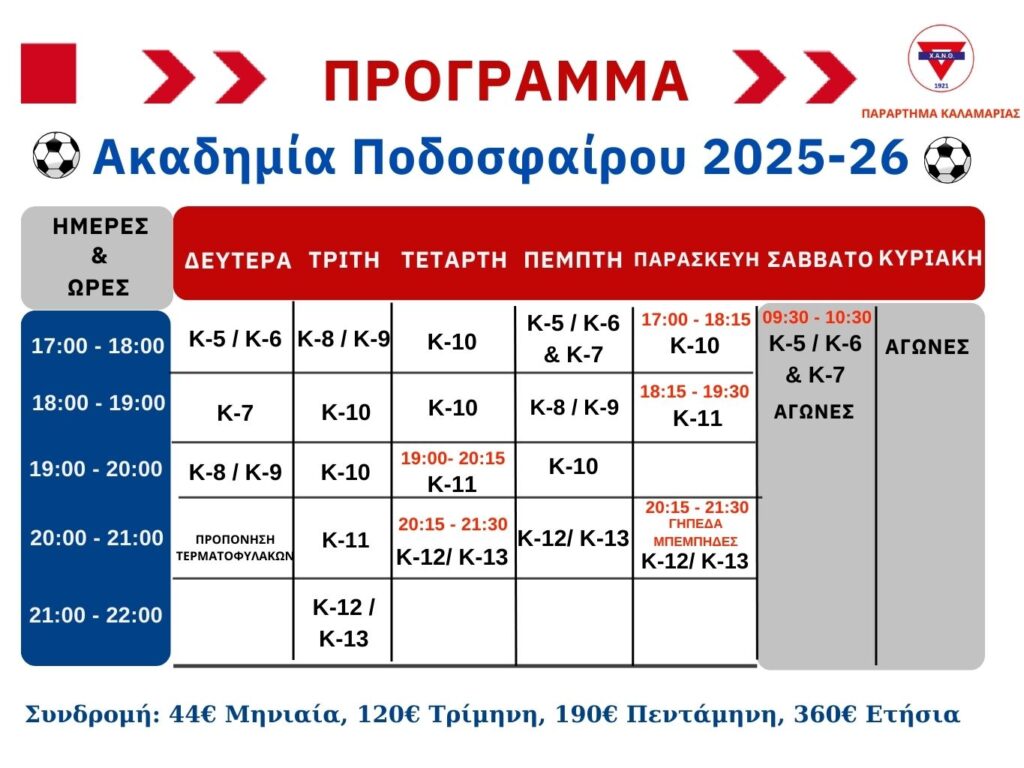 | Συνδρομή: | 44€ μηνιαία, 120€ τρίμηνη, 190€ πεντάμηνη, 360€ ετήσια Προπονητές: Δημήτρης Τσουτάνης & Χρήστος Γαλάτσης |