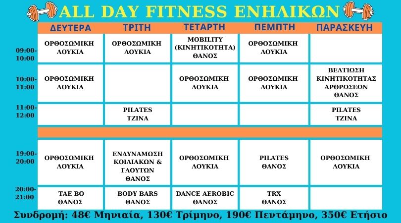 ΝΕΟ ΠΡΟΓΡΑΜΜΑ ALL DAY FITNESS ΕΝΗΛΙΚΩΝ