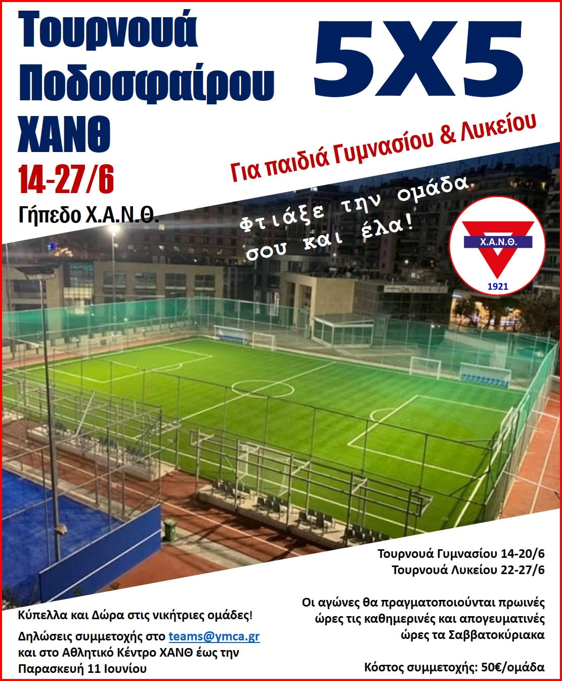 Είσαι μαθητής Γυμνασίου και Λυκείου; Μάζεψε τους φίλους σου, δημιουργήστε την ομάδα σας και δηλώστε συμμετοχή στο τουρνουά ποδοσφαίρου 5Χ5 της ΧΑΝΘ.